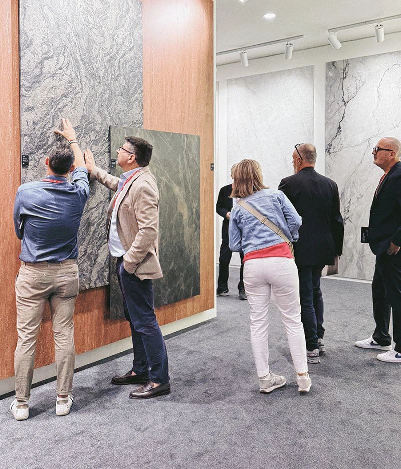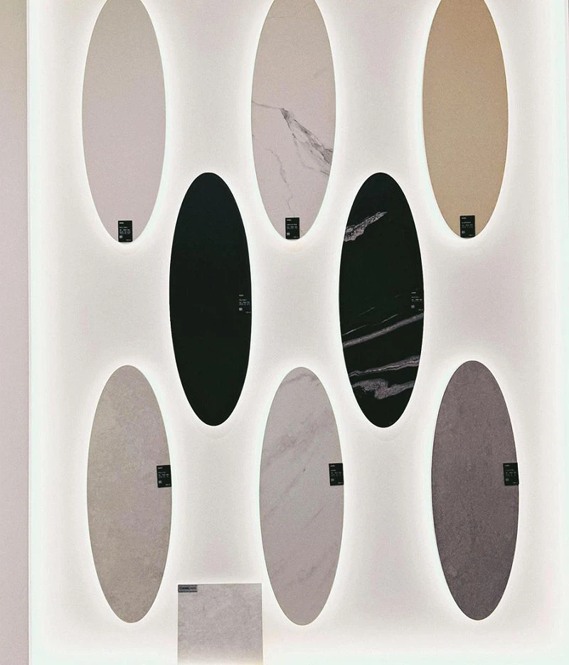 На цій виставці компанія Nabel Tiles продемонструвала загалом 31 продукт із спеченого каменю та 19 плиток, у тому числі 5 плит великого-формату розміром 1600 × 3200 мм і 6 продуктів із плитки розміром 600 × 1200 мм. Завдяки інтегрованим дисплеям у різних сценаріях, таких як зовнішні стіни, ванні кімнати, острови та стільниці, продукти виходять за межі традиційних матеріалів і функціональності, представляючи бездоганні загальні просторові рішення. Це привернуло багатьох міжнародних дизайнерів і професійних покупців до того, щоб вони зупинилися й поговорили.